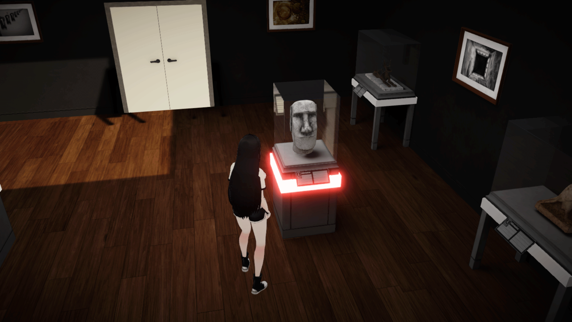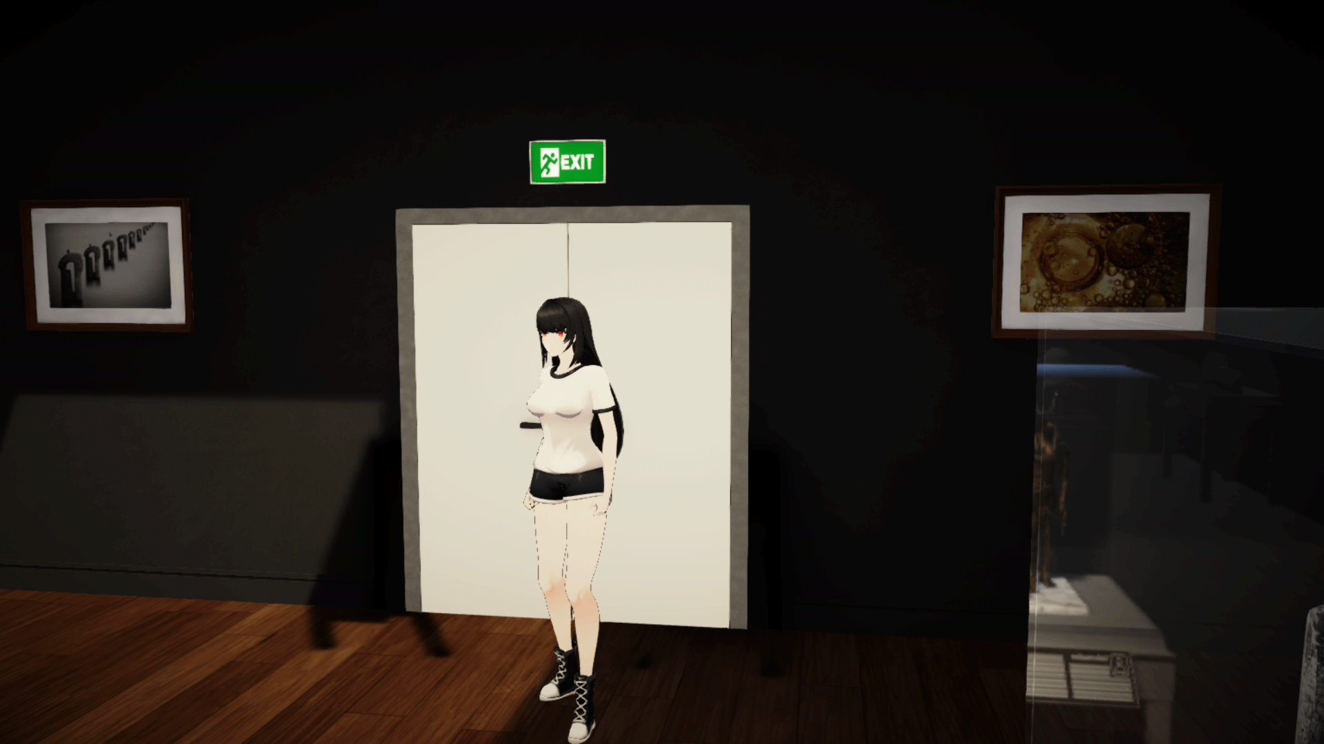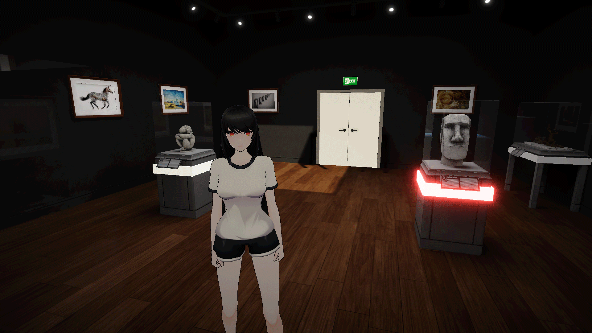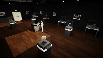 - Third-person exploration in a detailed art gallery